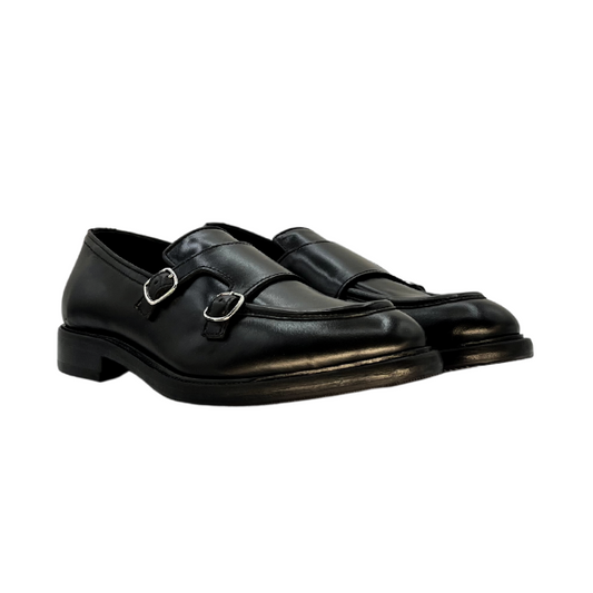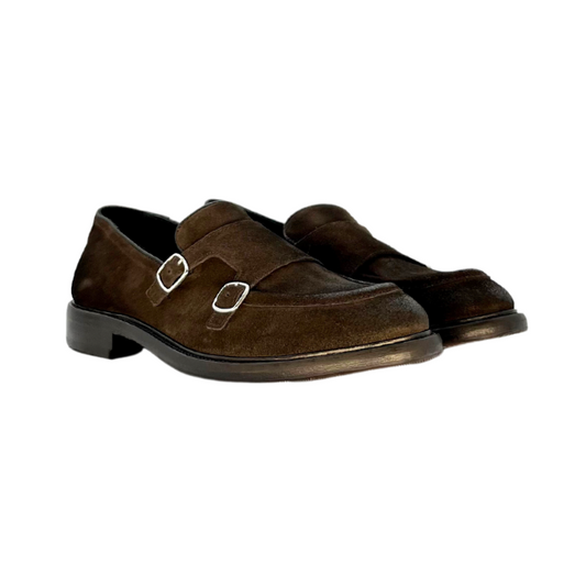 Scarpa artigianale doppia fibbia in camoscio lavato