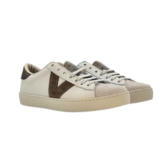 Sneakers fondo cassetta in suede camel e logo V testa moro