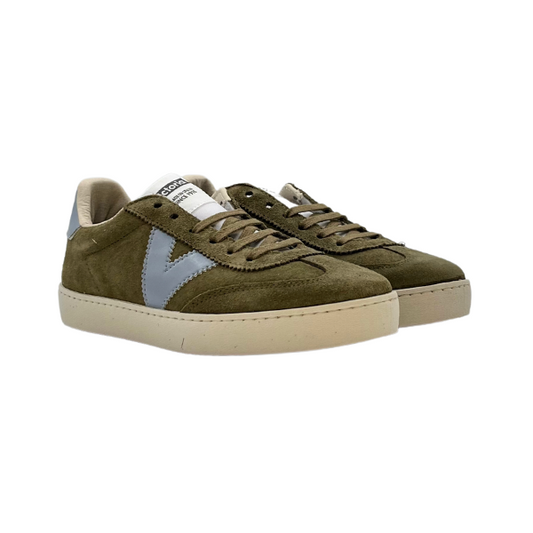 Sneakers fondo cassetta in suede khaki e logo V sky