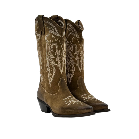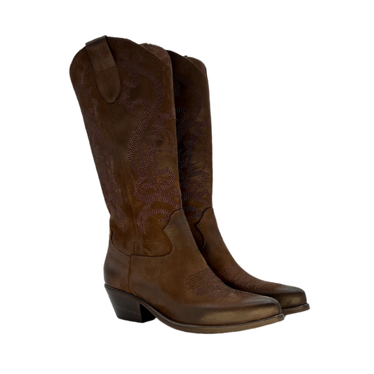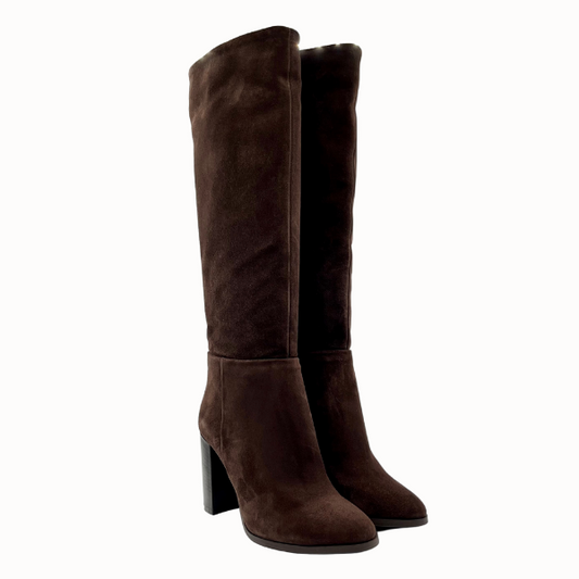 In offertaStivale a tubo tacco 85 in camoscio tabacco