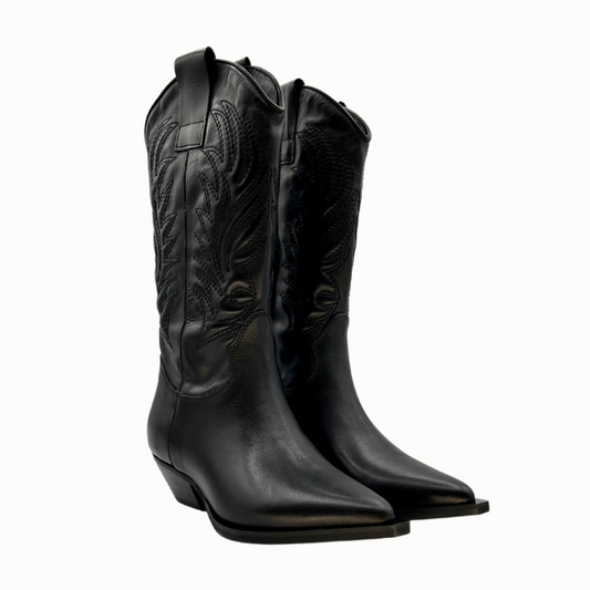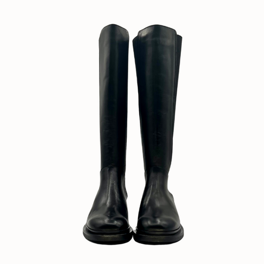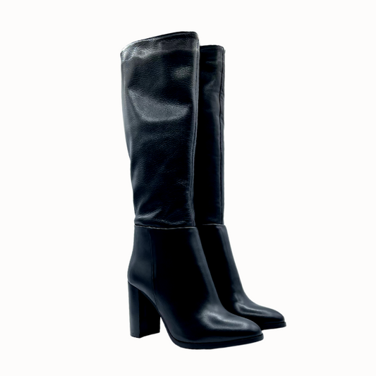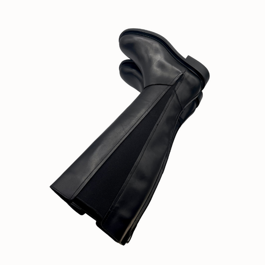 Stivale in pelle nera tacco 2 con elastico assimmetrico
