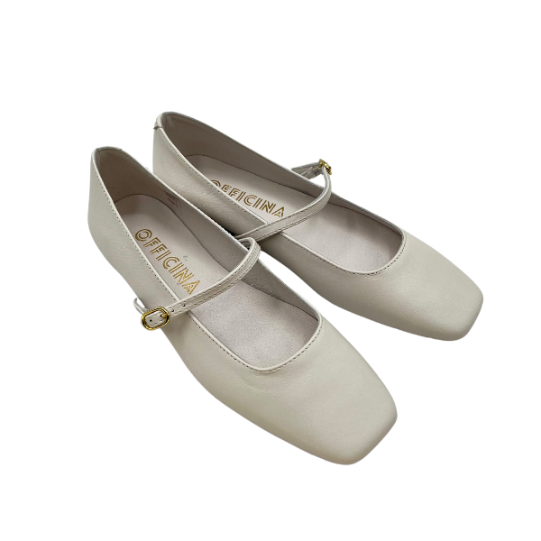 Ballerina con cinturino in nappa latte e sottopiede imbottito
