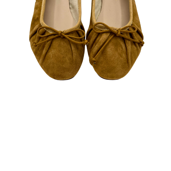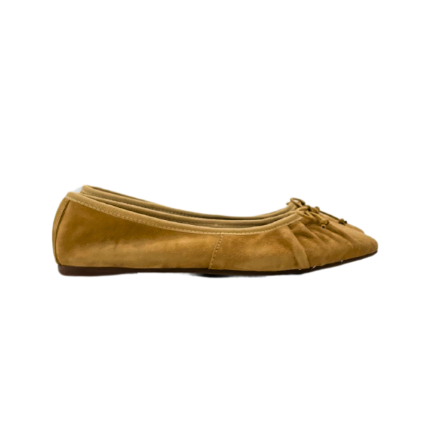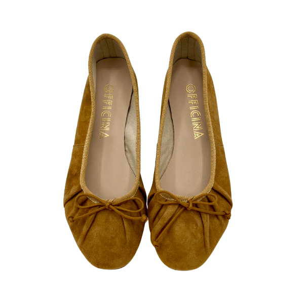 Ballerina plissè in camoscio tabacco con sottopiede imbottito