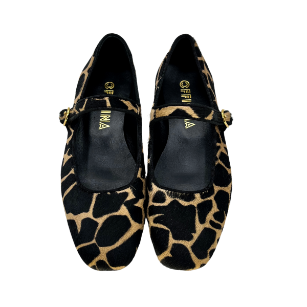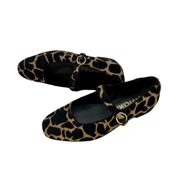 Ballerina punta quadrata in cavallino stampa giraffa.