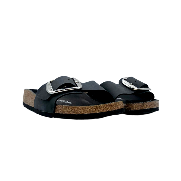 Il modello BIRKENSTOCK Madrid è un vero classico che entusiasma il mondo della moda con il suo design essenziale. La variante Big Buckle presenta una fibbia ad ardiglione grande ed elegante, un bel particolare che spicca su questi sandali molto sobri. Il sottopiede del plantare semi-exquisit è rivestito in morbida pelle liscia in colore coordinato alla scarpa. La tomaia è composta da pelle nabuk particolarmente spessa e oliata, lavorata a cuciture aperte.