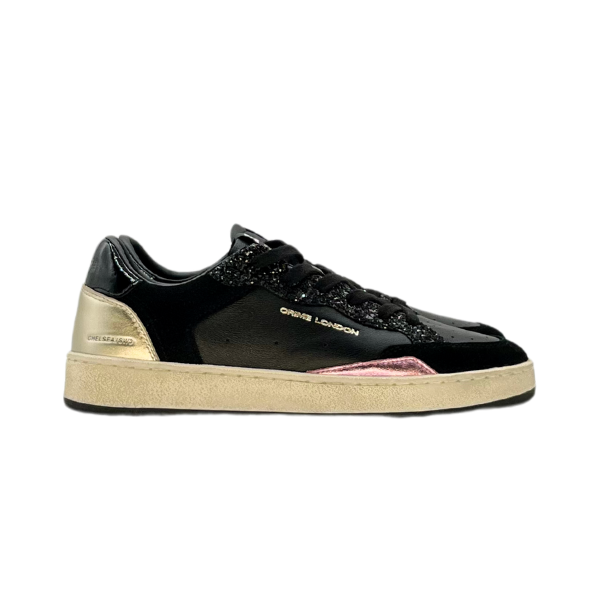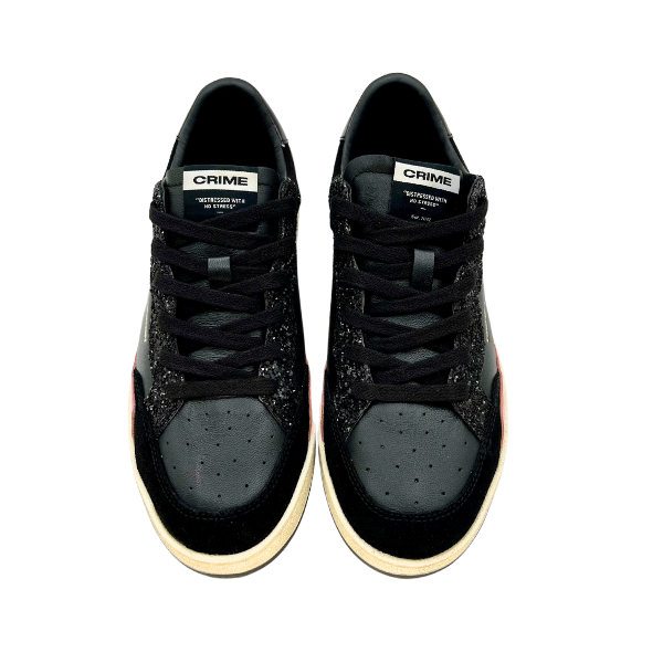 Nuovo modello nella collezione Crime London, sneaker dal gusto retrò infatizzato caratterizzato da una colorazione tot black per un'immagine molto sofisticata.