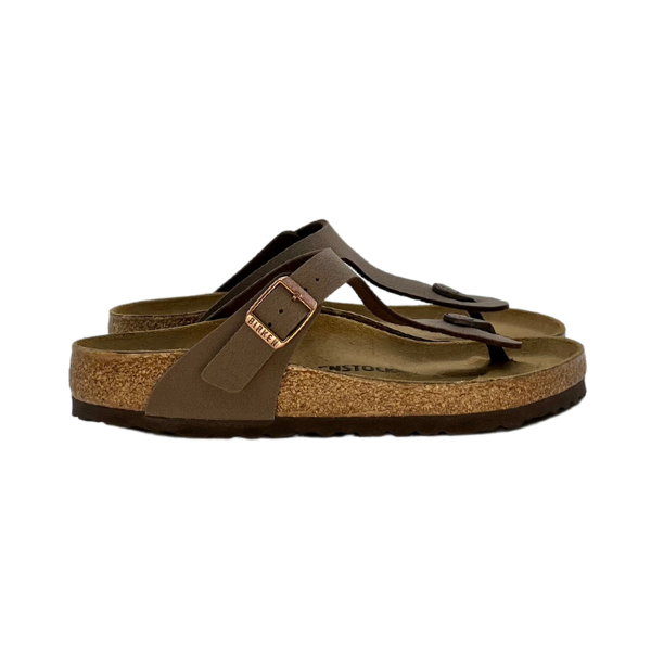 Il modello BIRKENSTOCK Gizeh è un vero classico dallo stile poliedrico. L’elegante sandalo a infradito coniuga l’appoggio ottimale al design minimalista alla moda. La tomaia è in materiale sintetico Birko-Flor® dermoaffine e resistente e presenta un raffinato effetto Nabuk. Grazie alla speciale lavorazione, la tomaia può essere facilmente scambiata per vera pella sia per colore che per texture.