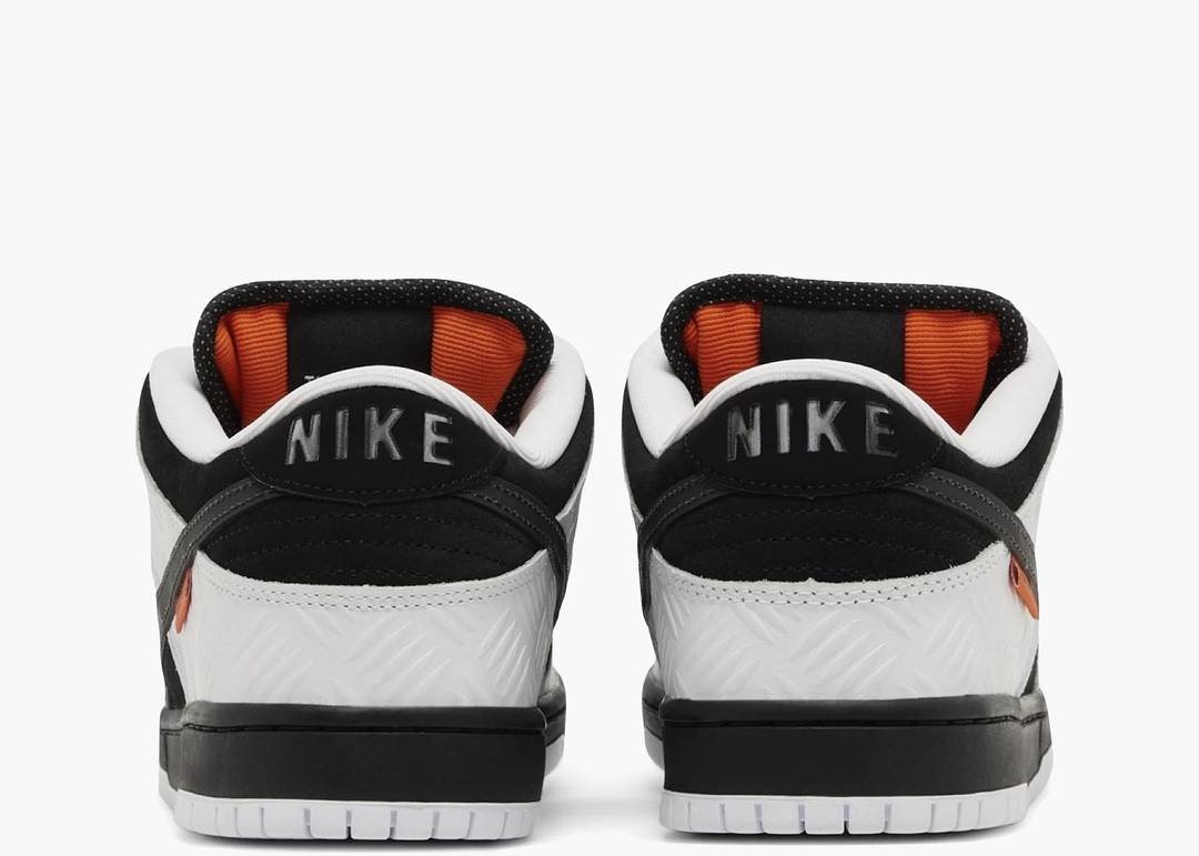 La Nike SB Dunk Low TIGHTBOOTH rappresenta l'interpretazione del brand giapponese della silhouette classica. La sneaker presenta una tomaia in pelle scamosciata nera con rivestimenti in pelle bianca testurizzata sull'avampiede e sul tallone. Sul lato laterale, un tag TIGHTBOOTH arancione è attaccato allo Swoosh in pelle nera riflettente. I doppi loghi adornano la linguetta imbottita, mentre le solette arancioni mostrano il marchio Nike SB. Altri dettagli sono una suola in gomma nera, a contrasto con una suola in gomma bianca aderente.